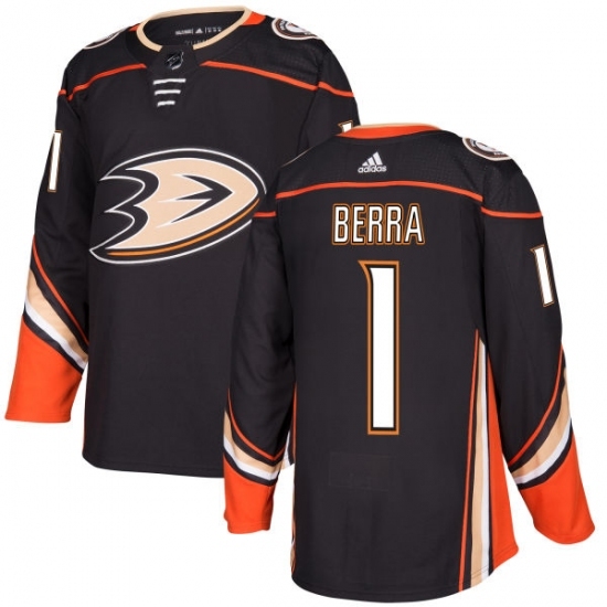• Men's Adidas Anaheim Ducks #1 Reto Berra Premier Black Home NHL Jersey
