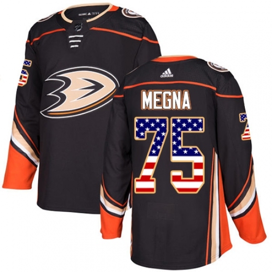 Men's Adidas Anaheim Ducks #75 Jaycob Megna Authentic Black USA Flag Fashion NHL Jersey