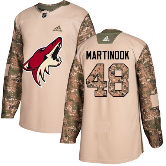 • Men's Adidas Arizona Coyotes #48 Jordan Martinook Authentic Camo Veterans Day Practice NHL Jersey
