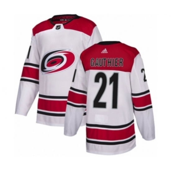 Men's Adidas Carolina Hurricanes #21 Julien Gauthier Authentic White Away NHL Jersey