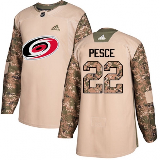 • Men's Adidas Carolina Hurricanes #22 Brett Pesce Authentic Camo Veterans Day Practice NHL Jersey