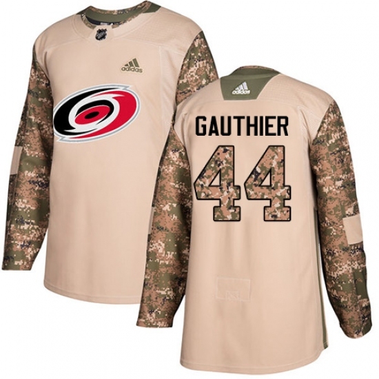 • Men's Adidas Carolina Hurricanes #44 Julien Gauthier Authentic Camo Veterans Day Practice NHL Jersey