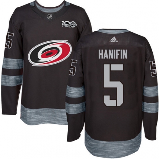 Men's Adidas Carolina Hurricanes #5 Noah Hanifin Authentic Black 1917-2017 100th Anniversary NHL Jersey