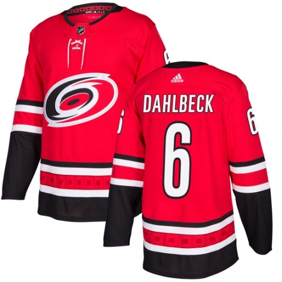 • Men's Adidas Carolina Hurricanes #6 Klas Dahlbeck Authentic Red Home NHL Jersey
