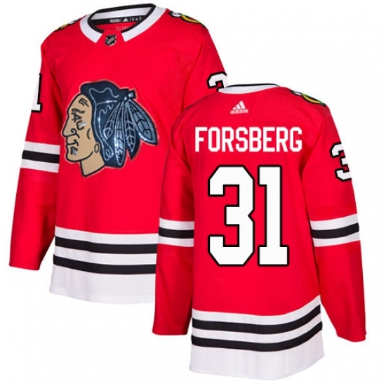 • Men's Adidas Chicago Blackhawks #31 Anton Forsberg Authentic Red Fashion Gold NHL Jersey