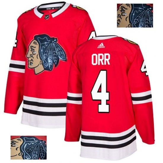 • Men's Adidas Chicago Blackhawks #4 Bobby Orr Authentic Red Fashion Gold NHL Jersey