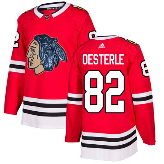 • Men's Adidas Chicago Blackhawks #82 Jordan Oesterle Authentic Red Fashion Gold NHL Jersey