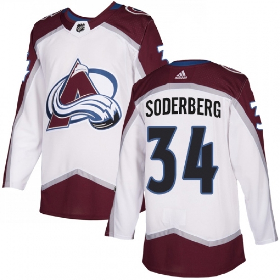 Men's Adidas Colorado Avalanche #34 Carl Soderberg White Road Authentic Stitched NHL Jersey