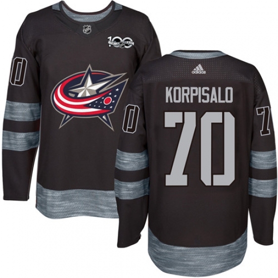 • Men's Adidas Columbus Blue Jackets #70 Joonas Korpisalo Authentic Black 1917-2017 100th Anniversary NHL Jersey