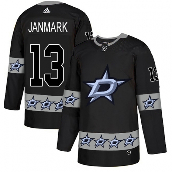• Men's Adidas Dallas Stars #13 Mattias Janmark Authentic Black Team Logo Fashion NHL Jersey