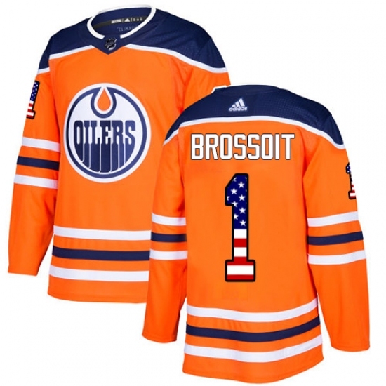 Men's Adidas Edmonton Oilers #1 Laurent Brossoit Authentic Orange USA Flag Fashion NHL Jersey