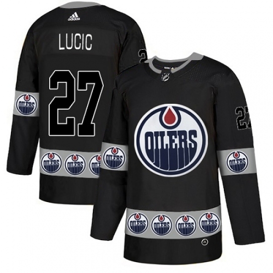 • Men's Adidas Edmonton Oilers #27 Milan Lucic Authentic Black Team Logo Fashion NHL Jersey