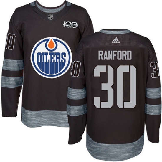• Men's Adidas Edmonton Oilers #30 Bill Ranford Authentic Black 1917-2017 100th Anniversary NHL Jersey