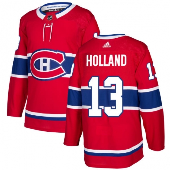• Men's Adidas Montreal Canadiens #13 Peter Holland Authentic Red Home NHL Jersey