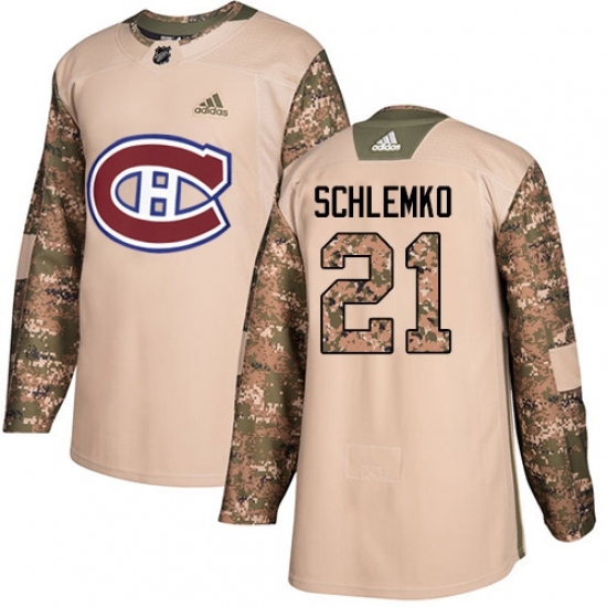 • Men's Adidas Montreal Canadiens #21 David Schlemko Authentic Camo Veterans Day Practice NHL Jersey