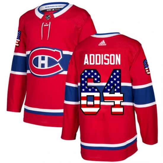Men's Adidas Montreal Canadiens #64 Jeremiah Addison Authentic Red USA Flag Fashion NHL Jersey