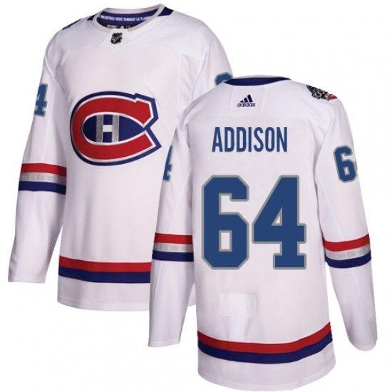 Men's Adidas Montreal Canadiens #64 Jeremiah Addison Authentic White 2017 100 Classic NHL Jersey