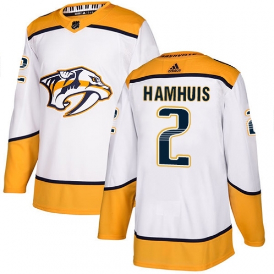 • Men's Adidas Nashville Predators #2 Dan Hamhuis Authentic White Away NHL Jersey