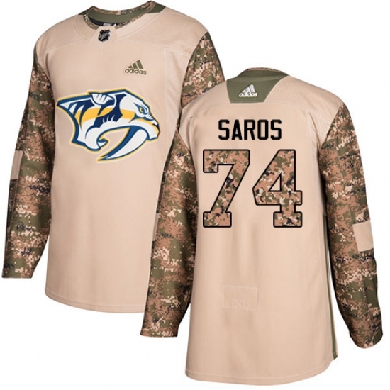 Men's Adidas Nashville Predators #74 Juuse Saros Authentic Camo Veterans Day Practice NHL Jersey