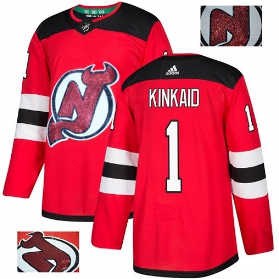 • Men's Adidas New Jersey Devils #1 Keith Kinkaid Authentic Red Fashion Gold NHL Jersey