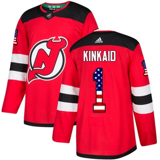 Men's Adidas New Jersey Devils #1 Keith Kinkaid Authentic Red USA Flag Fashion NHL Jersey