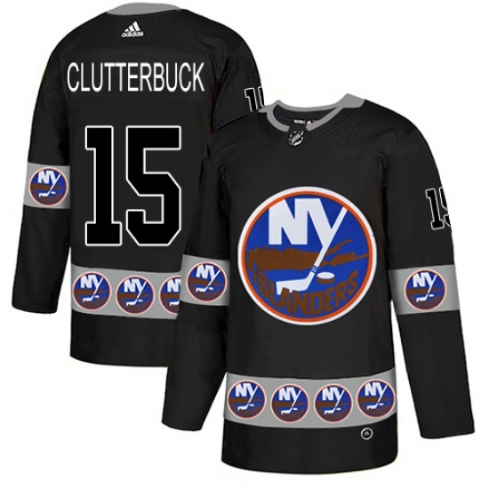 Men's Adidas New York Islanders #15 Cal Clutterbuck Authentic Black Team Logo Fashion NHL Jersey