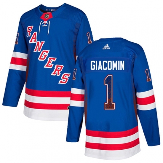 • Men's Adidas New York Rangers #1 Eddie Giacomin Authentic Royal Blue Drift Fashion NHL Jersey