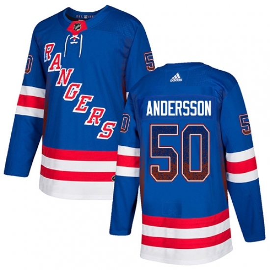 • Men's Adidas New York Rangers #50 Lias Andersson Authentic Royal Blue Drift Fashion NHL Jersey