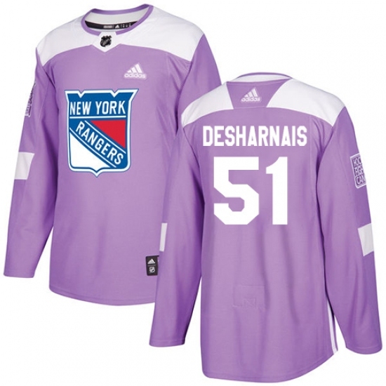 Men's Adidas New York Rangers #51 David Desharnais Authentic Purple Fights Cancer Practice NHL Jersey