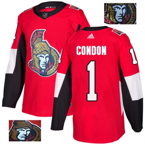 Men's Adidas Ottawa Senators #1 Mike Condon Authentic Red Fashion Gold NHL Jersey
