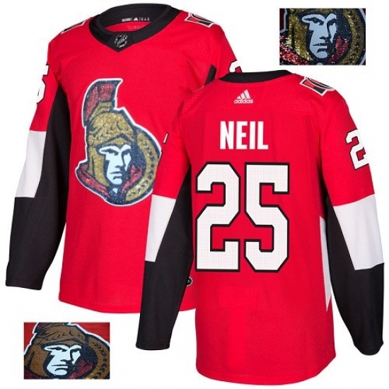 Men's Adidas Ottawa Senators #25 Chris Neil Authentic Red Fashion Gold NHL Jersey