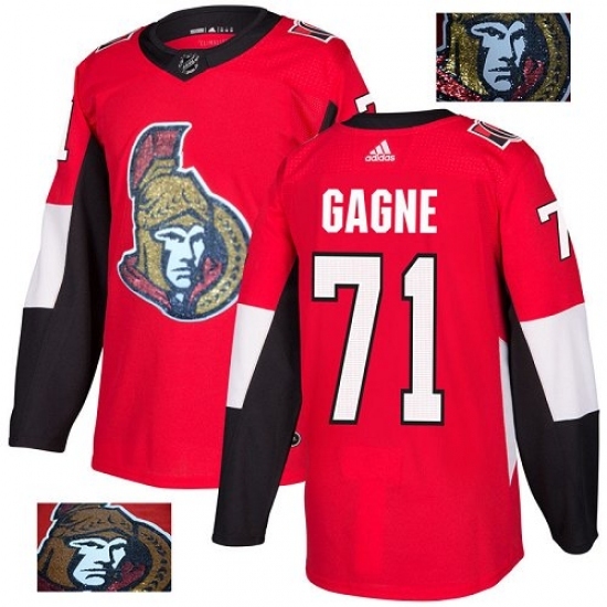 • Men's Adidas Ottawa Senators #71 Gabriel Gagne Authentic Red Fashion Gold NHL Jersey
