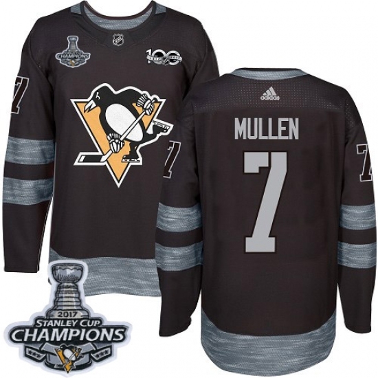 • Men's Adidas Pittsburgh Penguins #7 Joe Mullen Authentic Black 1917-2017 100th Anniversary 2017 Stanley Cup Champions NHL Jersey