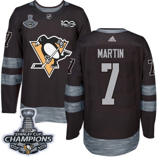 • Men's Adidas Pittsburgh Penguins #7 Paul Martin Authentic Black 1917-2017 100th Anniversary 2017 Stanley Cup Champions NHL Jersey
