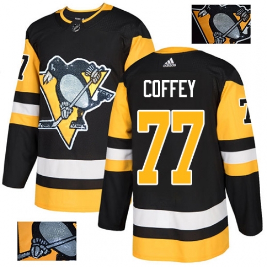 Men's Adidas Pittsburgh Penguins #77 Paul Coffey Authentic Black Fashion Gold NHL Jersey