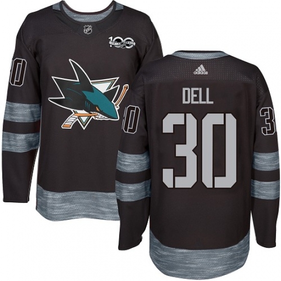 • Men's Adidas San Jose Sharks #30 Aaron Dell Authentic Black 1917-2017 100th Anniversary NHL Jersey