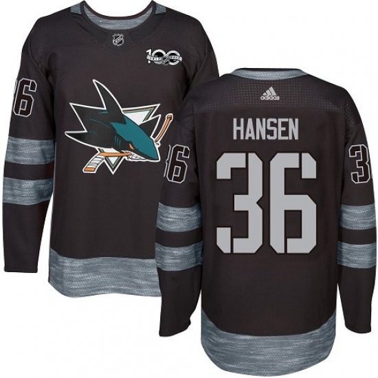 Men's Adidas San Jose Sharks #36 Jannik Hansen Authentic Black 1917-2017 100th Anniversary NHL Jersey