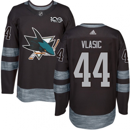 • Men's Adidas San Jose Sharks #44 Marc-Edouard Vlasic Authentic Black 1917-2017 100th Anniversary NHL Jersey