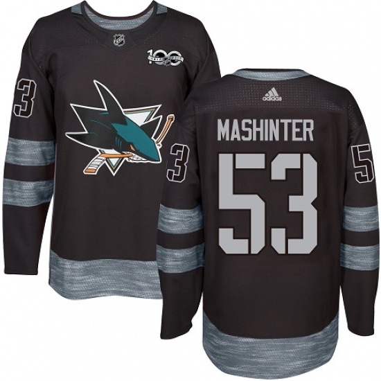 Men's Adidas San Jose Sharks #53 Brandon Mashinter Authentic Black 1917-2017 100th Anniversary NHL Jersey