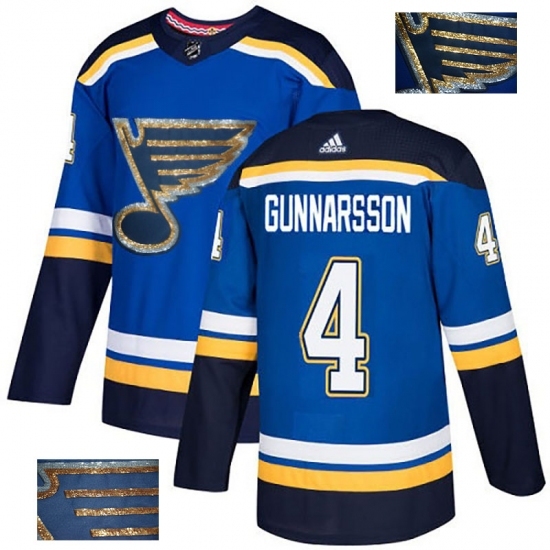 • Men's Adidas St. Louis Blues #4 Carl Gunnarsson Authentic Royal Blue Fashion Gold NHL Jersey