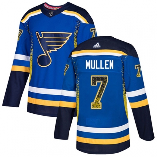 • Men's Adidas St. Louis Blues #7 Joe Mullen Authentic Blue Drift Fashion NHL Jersey