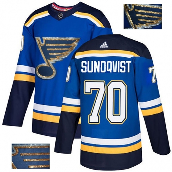 • Men's Adidas St. Louis Blues #70 Oskar Sundqvist Authentic Royal Blue Fashion Gold NHL Jersey