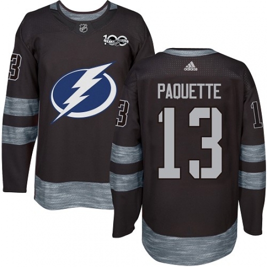 • Men's Adidas Tampa Bay Lightning #13 Cedric Paquette Authentic Black 1917-2017 100th Anniversary NHL Jersey