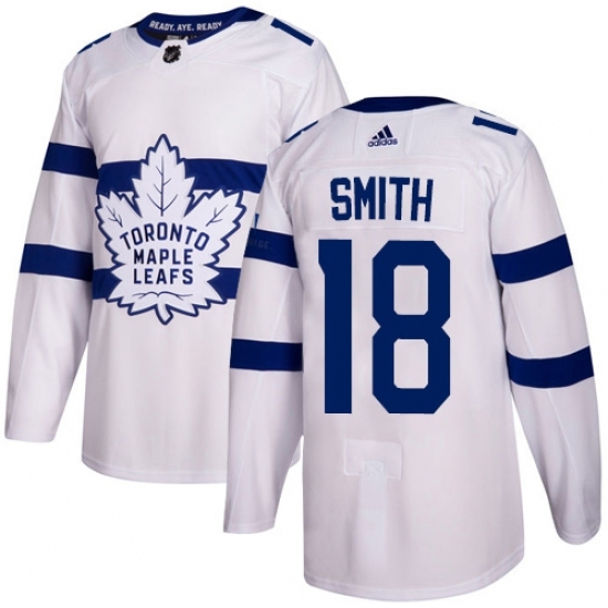 • Men's Adidas Toronto Maple Leafs #18 Ben Smith Authentic White 2018 Stadium Series NHL Jersey