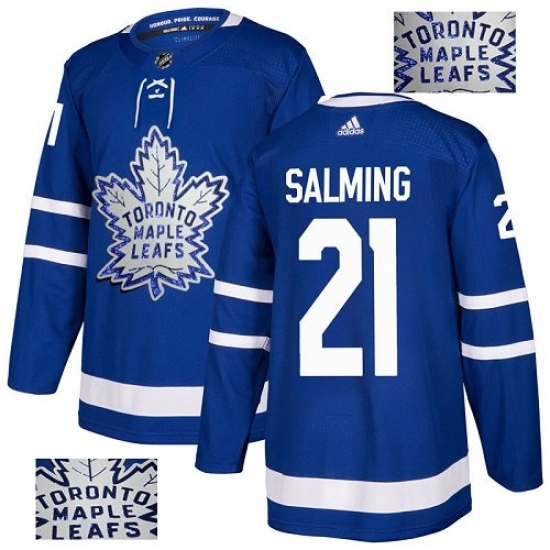 • Men's Adidas Toronto Maple Leafs #21 Borje Salming Authentic Royal Blue Fashion Gold NHL Jersey