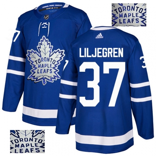 • Men's Adidas Toronto Maple Leafs #37 Timothy Liljegren Authentic Royal Blue Fashion Gold NHL Jersey