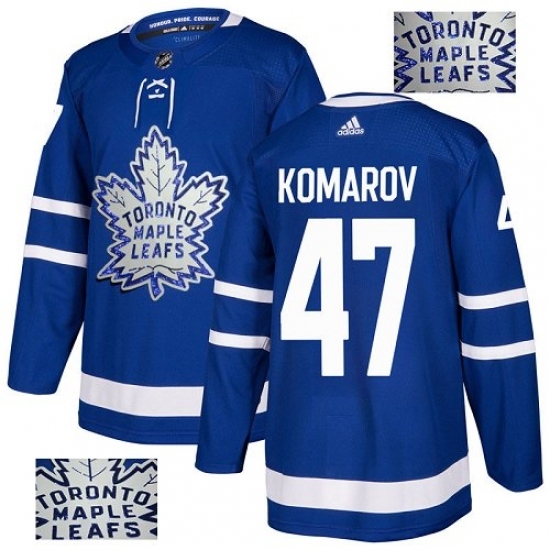 Men's Adidas Toronto Maple Leafs #47 Leo Komarov Authentic Royal Blue Fashion Gold NHL Jersey