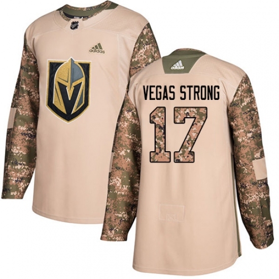 Men's Adidas Vegas Golden Knights #17 Vegas Strong Authentic Camo Veterans Day Practice NHL Jersey
