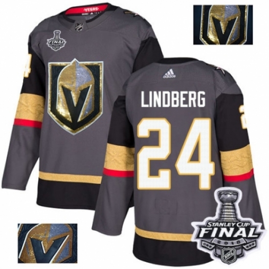 • Men's Adidas Vegas Golden Knights #24 Oscar Lindberg Authentic Gray Fashion Gold 2018 Stanley Cup Final NHL Jersey