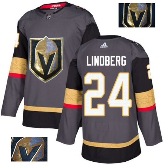• Men's Adidas Vegas Golden Knights #24 Oscar Lindberg Authentic Gray Fashion Gold NHL Jersey